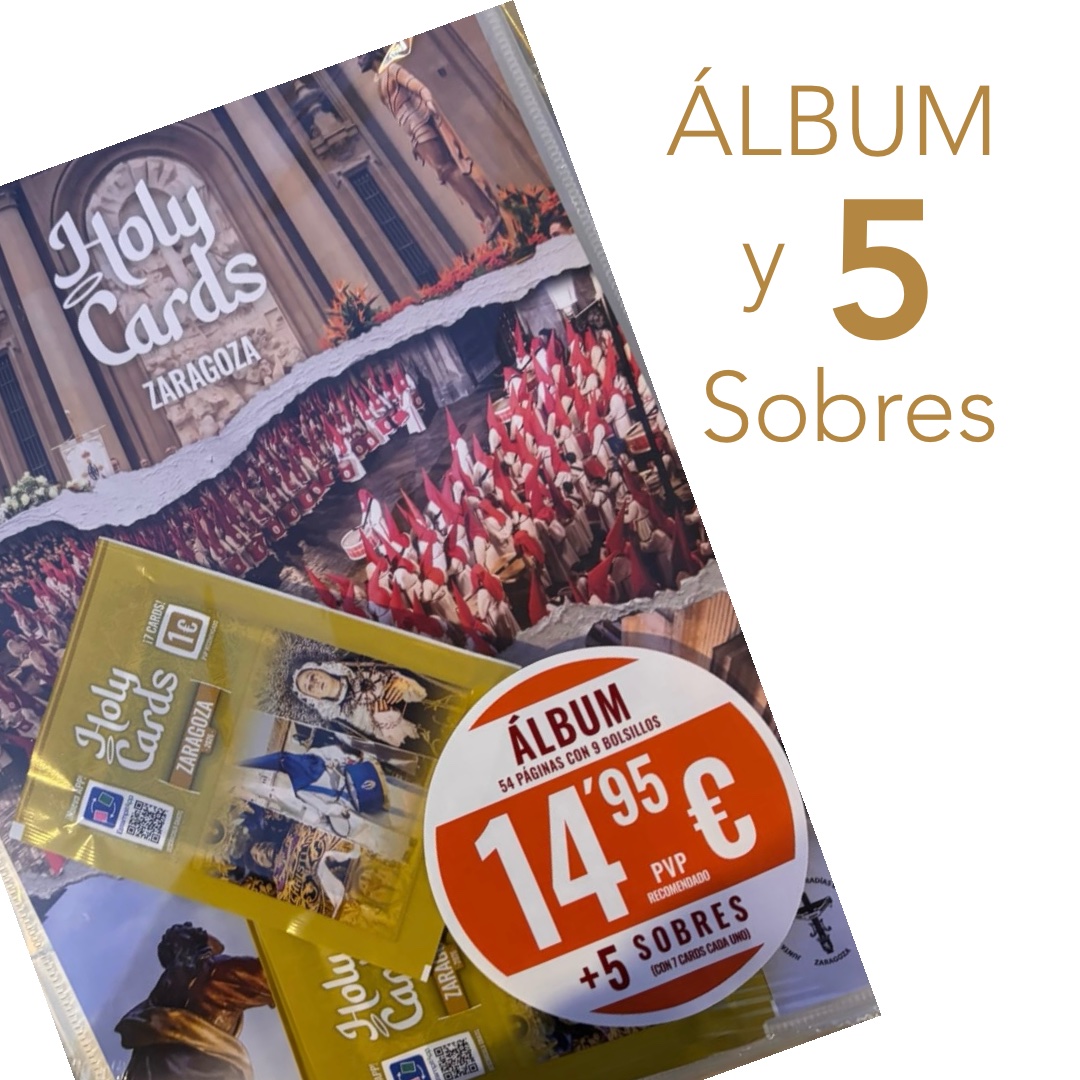 Álbum donde guardar la primera edición de Estampas cofrades, Holy Cards. Incluye 5 sobres con 35 estampas.
